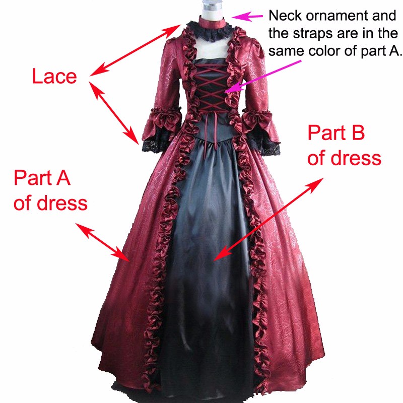 Color 7: Burgundy for part A, black for part B, black lace, white long petticoat