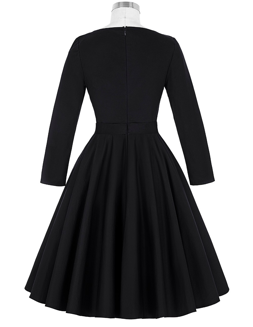 2016 Women Vintage 50s Retro Dress Plus Size club Office Party Dresses Long Three Quarter Sleeve elegant Black Dress Ball Gown
